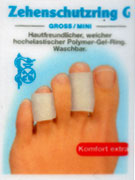 Zehenschutzringe werden angewendet, um nach dem Entfernen von Hühneraugen und Druckstellen auf und zwischen den Zehen ein schnelles Wiederkehren der Hühneraugen und Druckstellen zu verhindern.