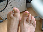 d.h. richtiges Schneiden der Nägel, Behandlung eingerollter und eingewachsener Nägel, Nagelmykosen oder verdickter Nägel.